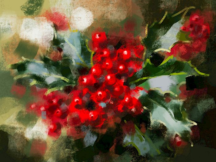 Ein weihnachtlicher Beerenzweig mit Christmas Holly. Zarte Blätter, leuchtende Beeren und eine lebendige Struktur, die natürlich wirkt.